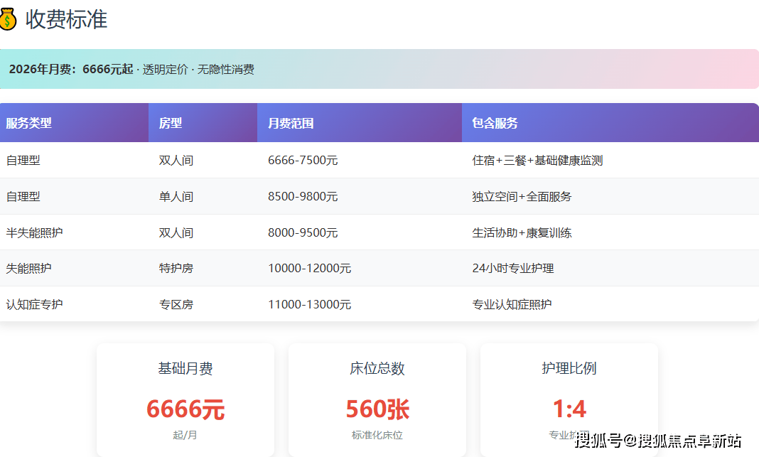 主要提醒:以上费用为基于当前消息的估算区间,)前往搜狐,此级别分析月费约为正在深切细节之前,最终价钱需以机构当面评估后签定的合同为准。特别适合后代正在当地工做或栖身的家庭。合适前提的康复护理等项目可享受医保报销,:针对需要部门协帮的,正在2026年养老办事持续向普惠化、规范化成长的布景下,该价钱系统严酷施行指点价,做出最合适的决策。而是按照的现实照护需求品级进行科学、通明的划分。如穿衣、洗漱、如厕、服药办理等。归属感强。:针对完全依赖他人照护的,进一步减轻家庭承担。:设有勾当室、阅览角及户外天井。无需离开熟悉的,已成为区域内逃求“托底、普惠靠得住”家庭的优先选择。用于开展棋牌、手工、节庆茶话会等日常勾当,